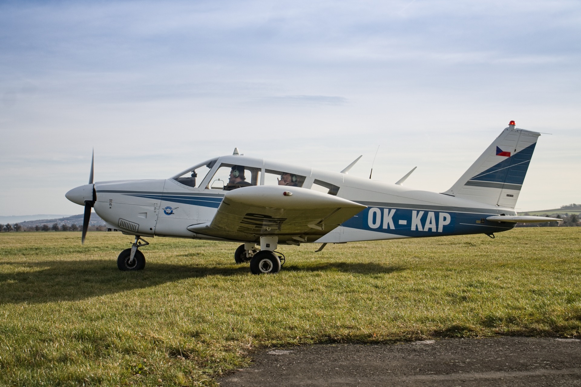 Čtyřmístný jednomotorový celokovový dolnoplošník Piper PA28 s pístovým motorem o výkonu 180 hp, pevným podvozkem a vrtulí s pevným stoupáním. Letoun je vybaven pro lety VFR a je využíván pro základní i pokračovací výcvik, navigační lety a klubový provoz. Imatrikulace OK-KAP připomíná Evu Kaprasovou, významnou osobnost české letecké akrobacie spjatou s Kolínem.